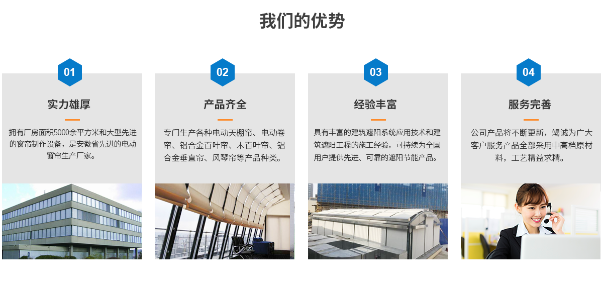 安徽恒尚智能化建筑遮陽工程有限公司是生產高品質窗簾產品的專業公司。本公司擁有廠房面積5000余平方米,是安徽省先進的電動窗簾生產廠家,公司擁有大型先進的窗簾制作設備和專業的生產和安裝技術人員,并有著嚴密的管理和質量體系,有效地保持了產品質量。本公司具有豐富的建筑遮陽系統的應用技術和建筑遮陽工程的施工經驗,可持續為全國用戶提供先進、專業的遮陽節能產品,可為建筑設計院和裝飾設計工程公司提供專業的建筑遮...